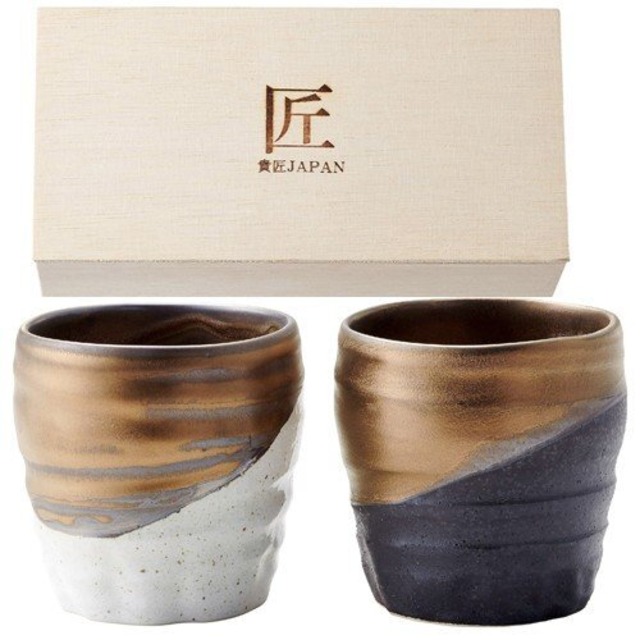 ギフトセットのお値段となります。 職人の手により程よく垂れる2色の釉薬が美しい器です。高級感があって使い勝手もある商品です。 サイズ 直径8.8×高さ8.3㎝、容量約275ml DR-02 ドリップ ペアマグカップは、職人の手により一つ一つ丁寧に作られた美しい器です。独特の垂れる釉薬が施され、2色のコントラストが高級感を演出しています。手に馴染む絶妙なサイズ感で、使い勝手も抜群です。 このアートピースは、使うたびに新しい発見があるマグカップ。贈り物にも最適な木箱入りギフトセットで、大切な人への贈り物にもぴったりです。日々の生活に彩りを添える素敵な時間を演出してくれることでしょう。 あなたにも、特別な贈り物や日常のお茶時間をより特別にする一品をお届けいたします。 ※ご使用の際は、取り扱いにご注意ください。