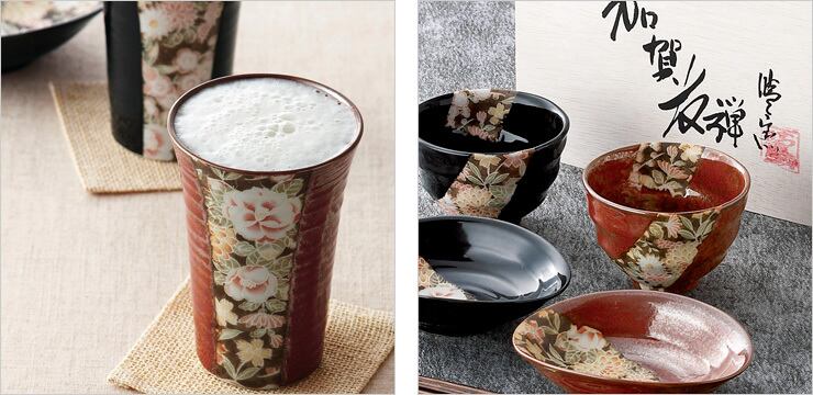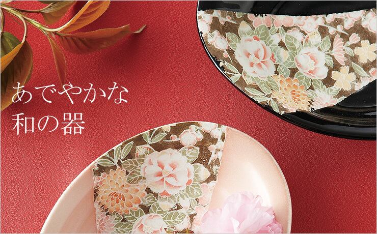 美濃焼窯元にて、職人が銅板転写技法を用いて手作業で一つ一つ丁寧に絵付けした、友禅の里、加賀を思わせるデザインは、食卓を彩る器です。