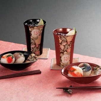美濃焼窯元にて、職人が銅板転写技法を用いて手作業で一つ一つ丁寧に絵付けした、友禅の里、加賀を思わせるデザインは、食卓を彩る器です。
