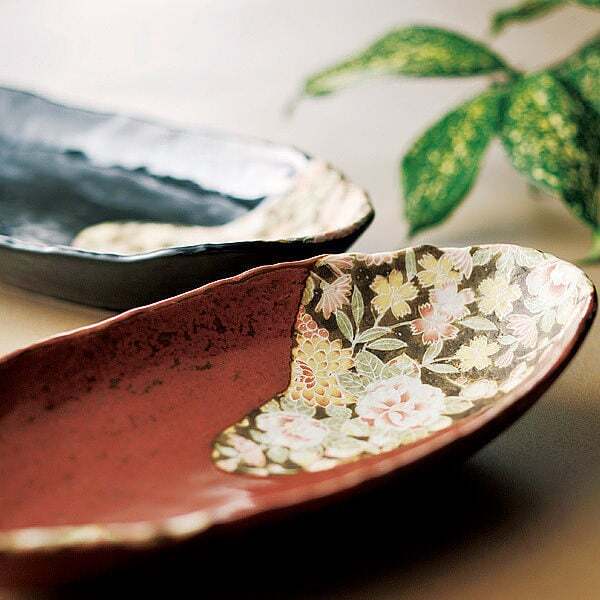美濃焼窯元にて、職人が銅板転写技法を用いて手作業で一つ一つ丁寧に絵付けした、友禅の里、加賀を思わせるデザインは、食卓を彩る器です。