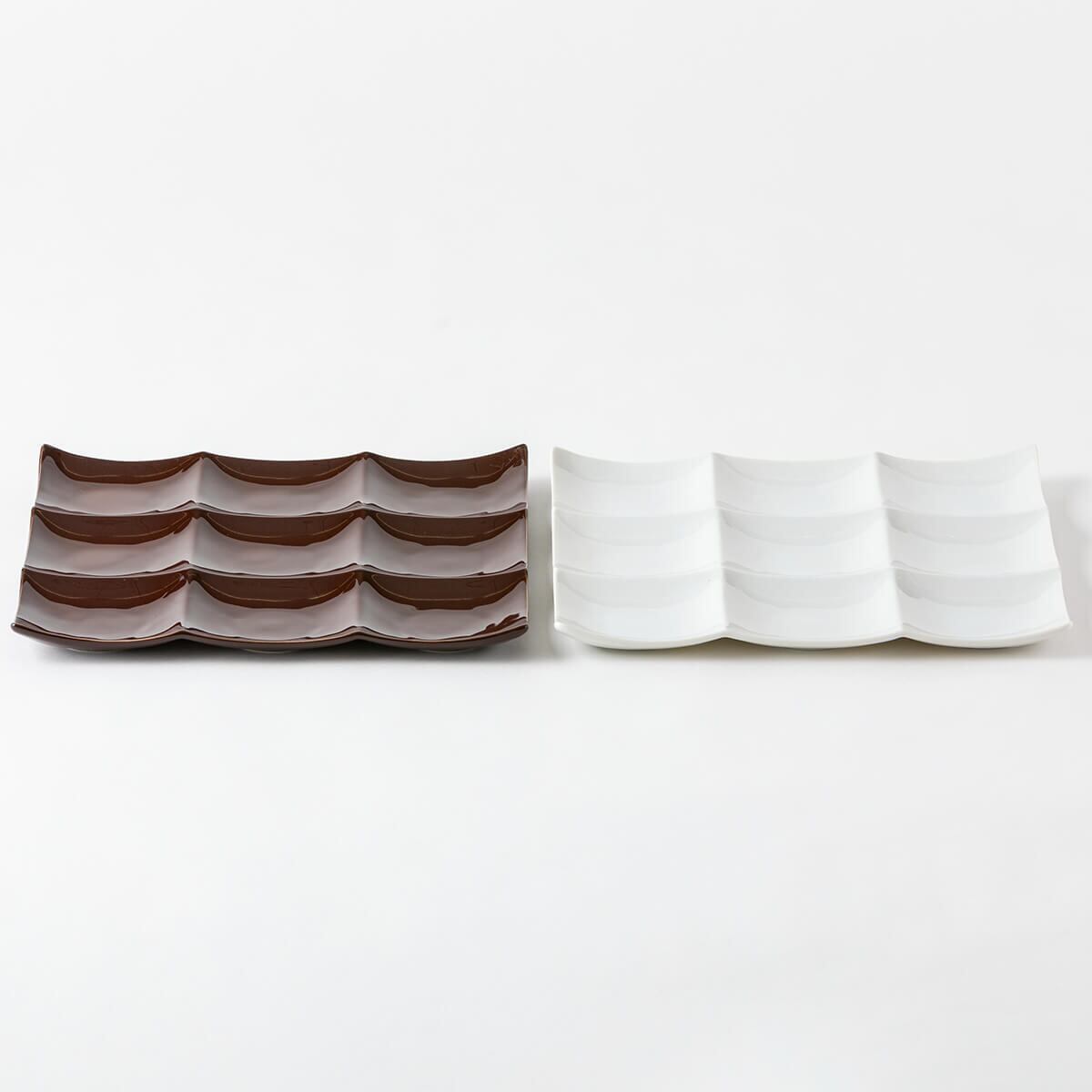 スタイリッシュで持ちやすい9連プレート、日本製のブラウン・ホワイト。薄めの成形で軽く、使いやすさもバツグンです。ホテルのブッフェ料理を思わせる豪華なデザインは、ご自宅でのお食事をリッチに演出し、料理を楽しく華やかにしてくれます。